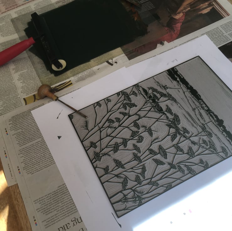 This is an original hand printed Lino cut.