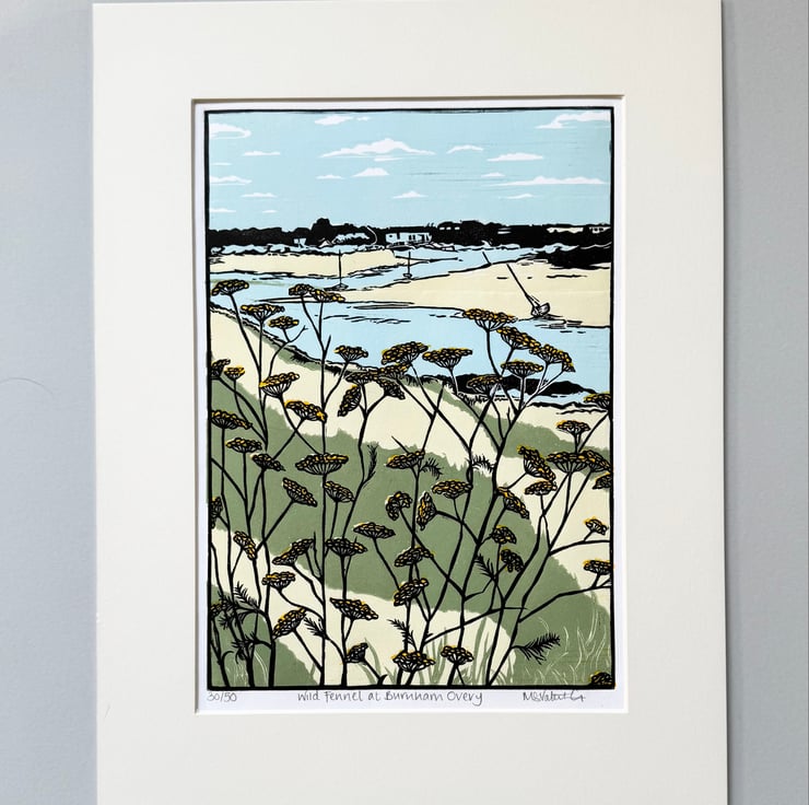 I grew up holidaying in North Norfolk and have spent many happy hours sailing, walking and pottering at Burnham Overy Staithe, which was the inspiration for this print.