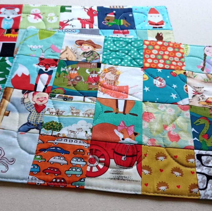 Images will vary on each mat, but will include the similar themes to that in the photos. This mat has some Christmas themed prints on one side - the other is more general for year-round fun.