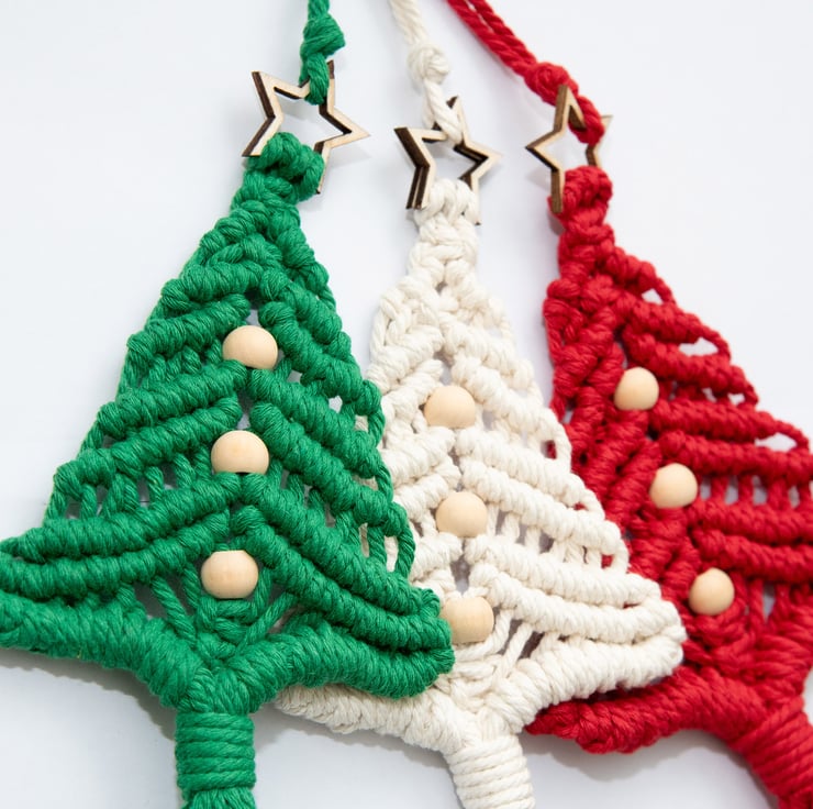 Gorgeous, macrame Christmas Tree decorations to adorn your tree, walls or door handles this festive season.