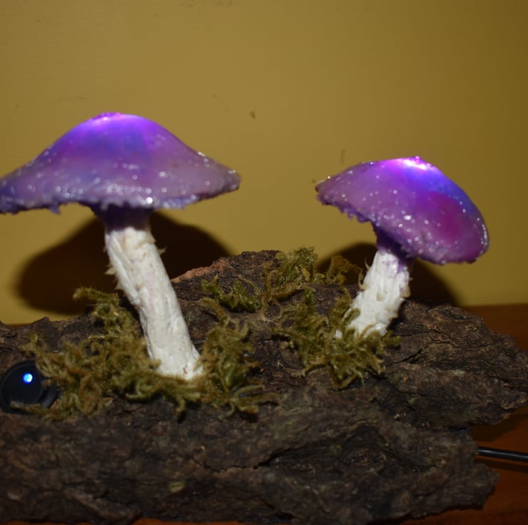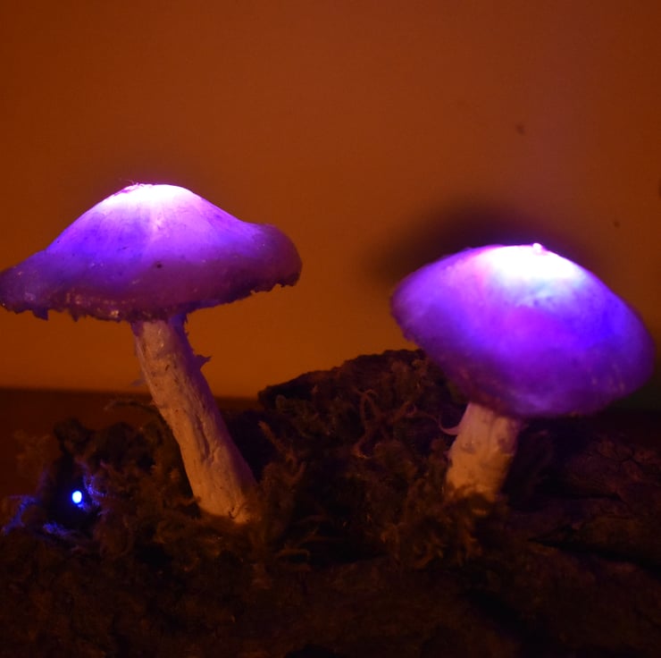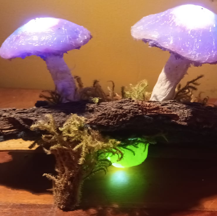 We are based in Cheshire and live near an old wood where I am often inspired by the wild fungi and trees growing there. My passion is re-creating the beauty that I see on my walks with my own little twist, bringing fungi to life with illumination.