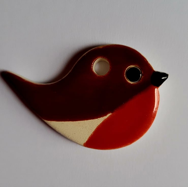 Each robin is made using white earthenware clay. Once dried it has been bisque fired to 1000C and hand painted with three coats of glaze and fired to 1080C to give it a good depth of colour