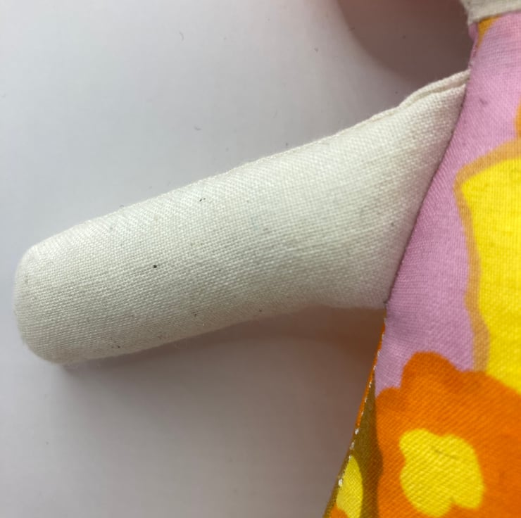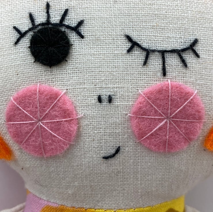 Her hair is made from off cuts of felt left over from making the Gonks, rabbits and horses.