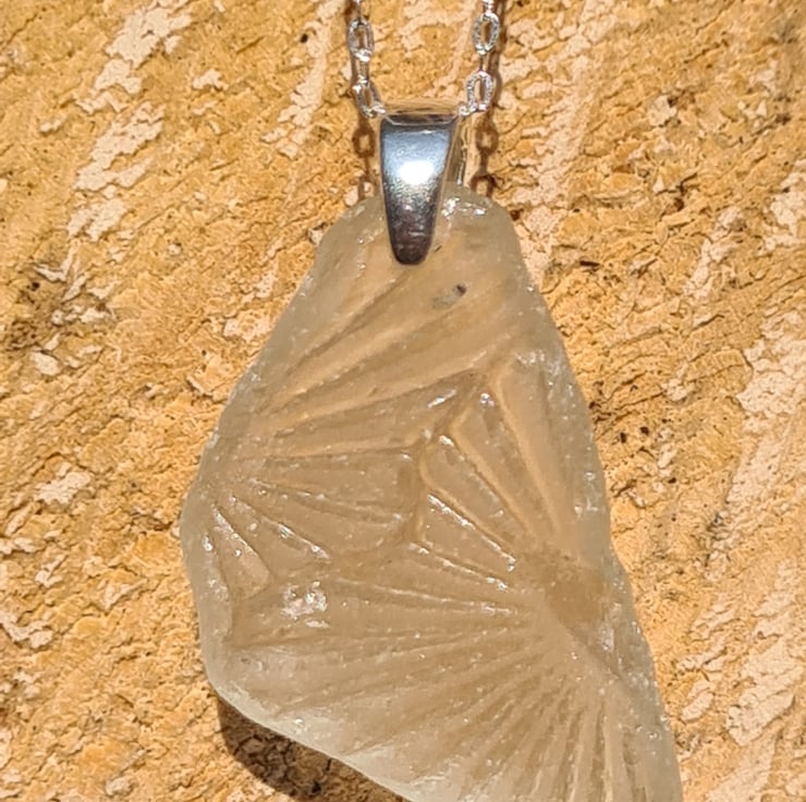 This unique piece was found along the North East coast. It was commonly used during the victorian era as privacy/decorative glass. My husband and I both remembered seeing it in our old primary schools. We both thought it would be an eye-catching pendant as it really comes to life in the sun.