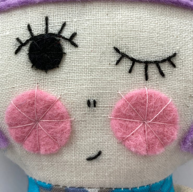 Her hair is made from off cuts of felt left over from making the Gonks, rabbits and horses.