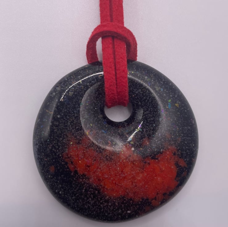Add a pop of fiery colour to your jewellery collection with this beautiful "Lava" red glass pendant. The unique colour combination of this pendant resembles that of molten lava in rock, making it a standout piece. Crafted with high-quality glass, this pendant is durable and will add a touch of boldness to any outfit. This pendant makes a great gift for the fashion-forward person in your life who loves to stand out in a crowd.