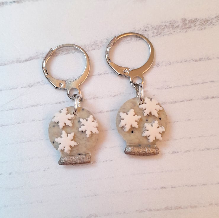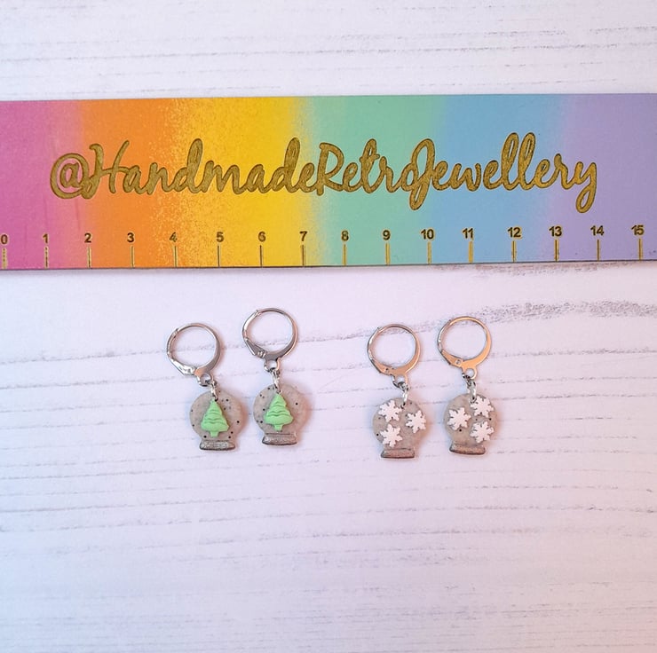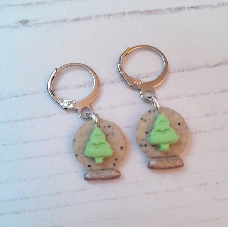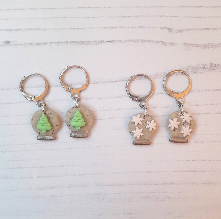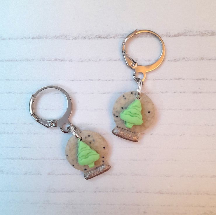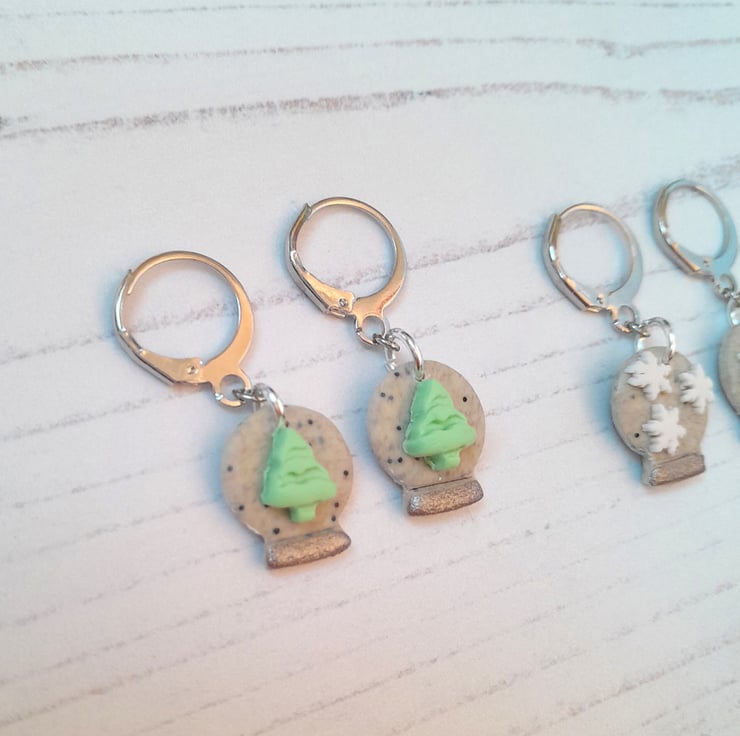 Cute little snow globe earrings, with your choice of snowflakes or a Christmas tree in the centre.
