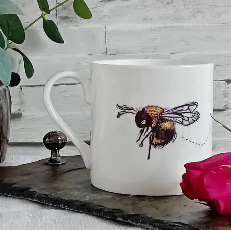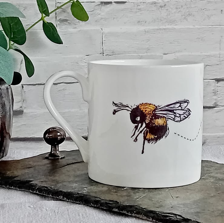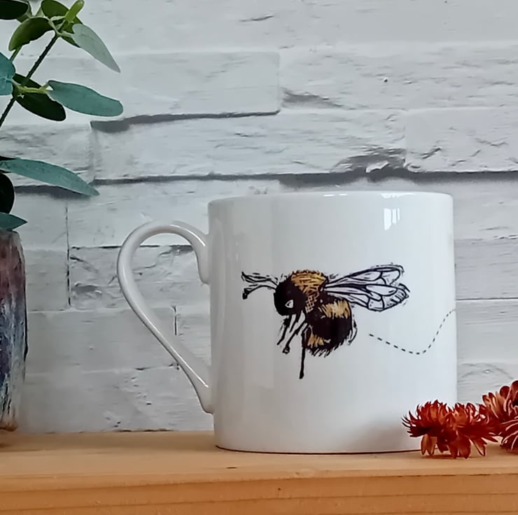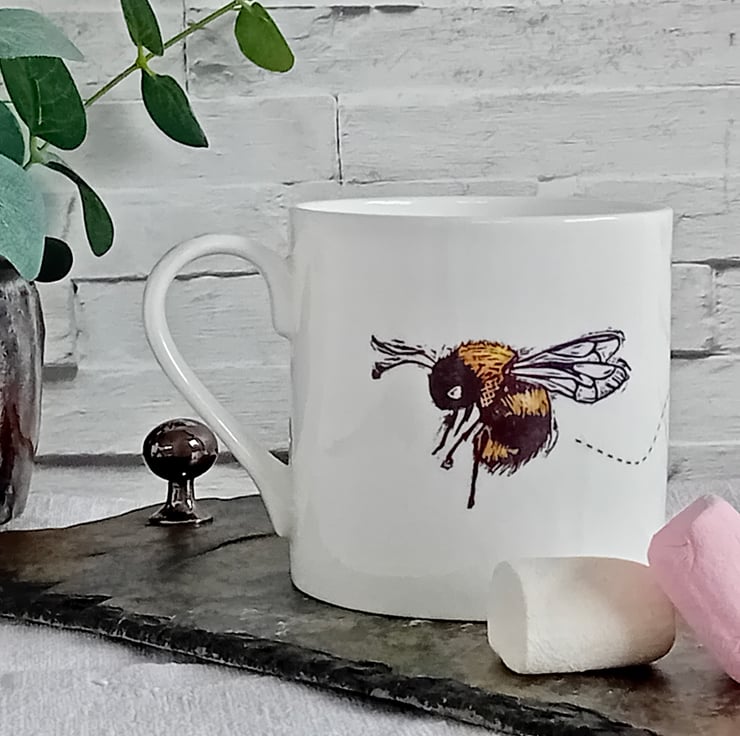 I apply the designs to the mugs by hand and fire them in the kiln to make them hard wearing.