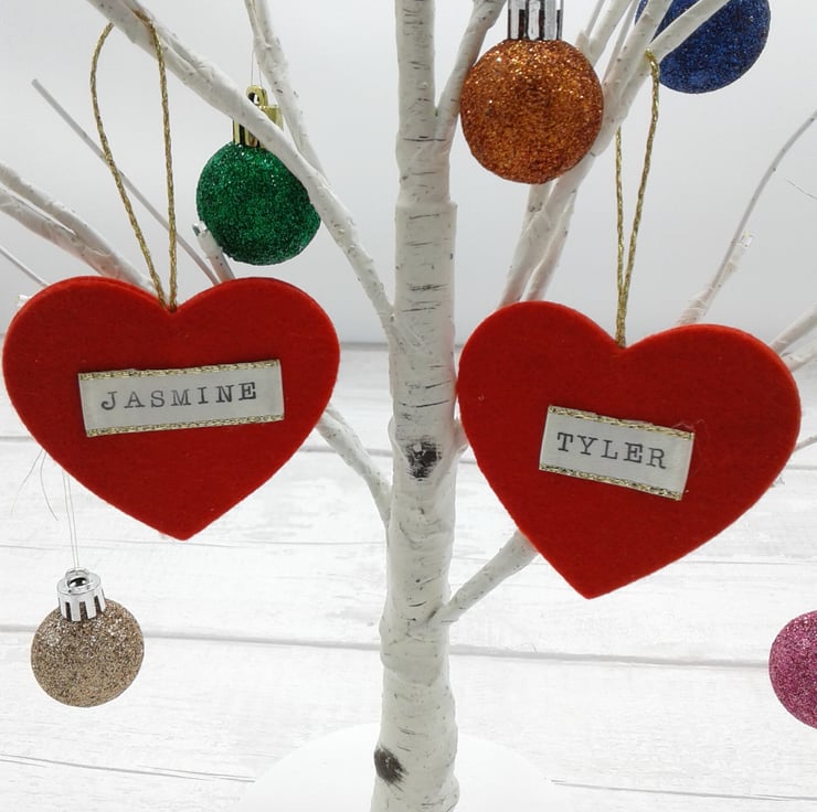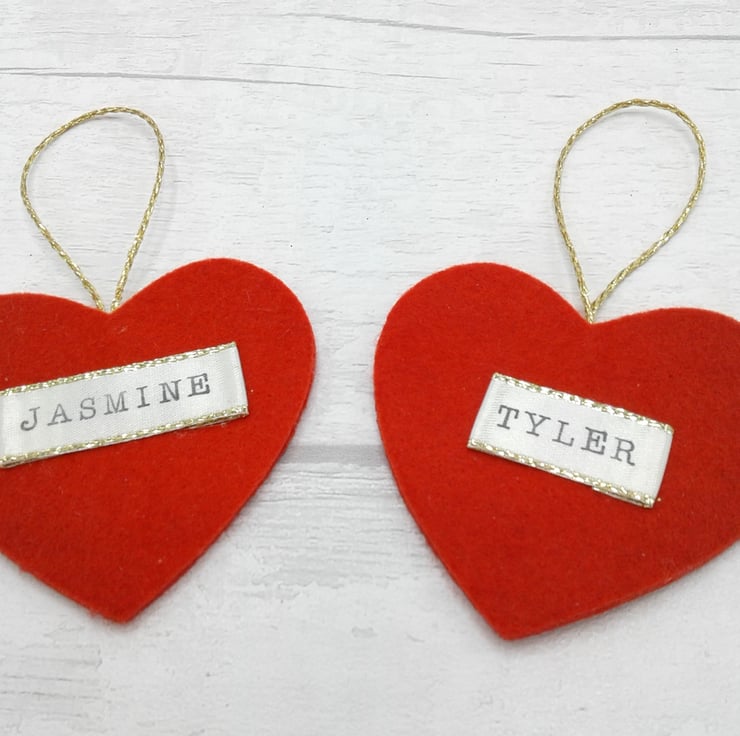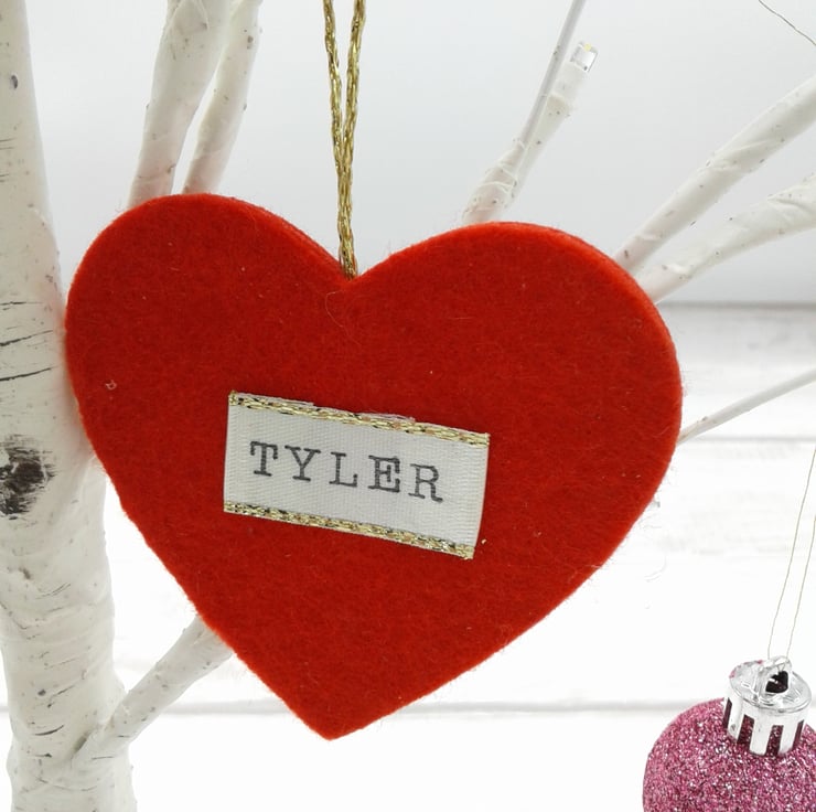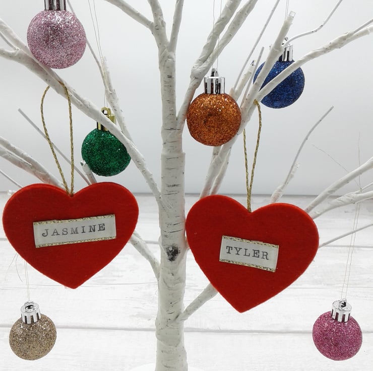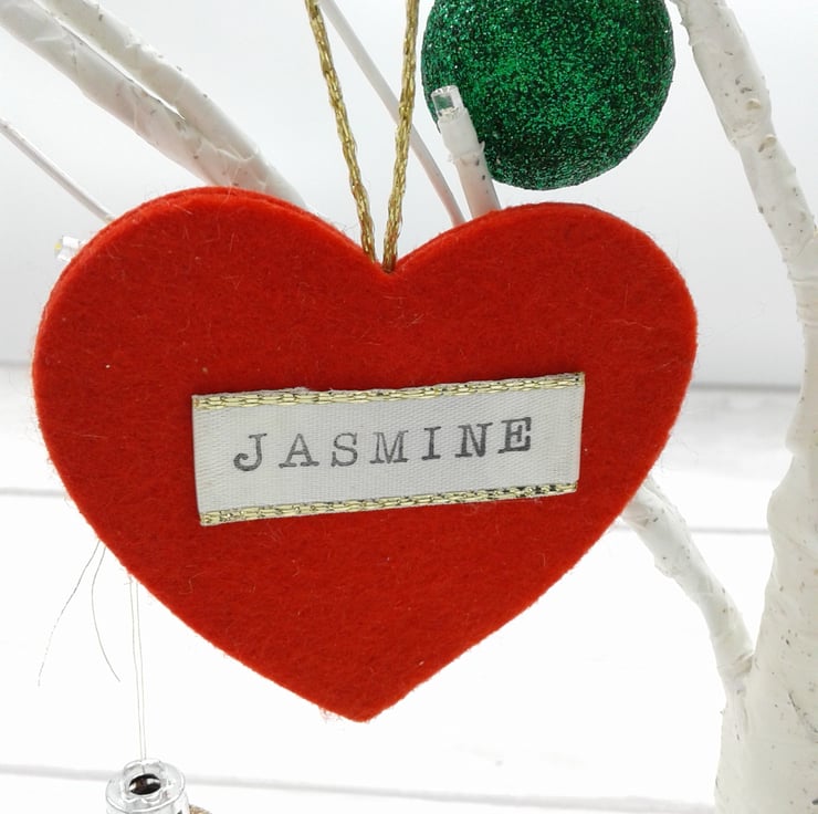 The personalised felt heart can be used as a decoration on a Christmas tree or as a Christmas place setting, that the recipient can then hang on a Christmas tree.