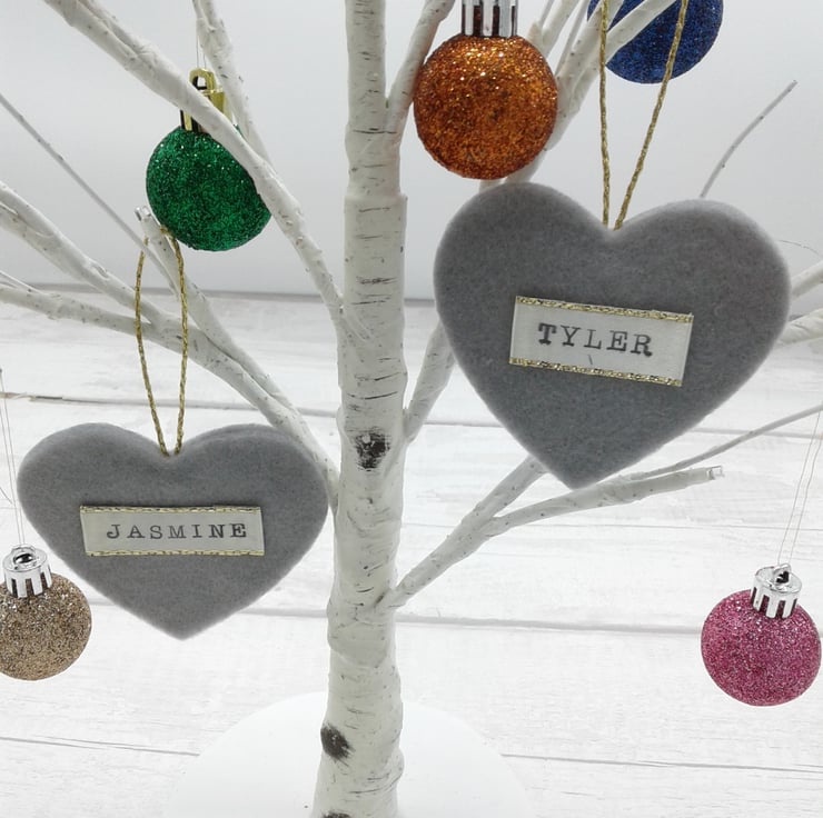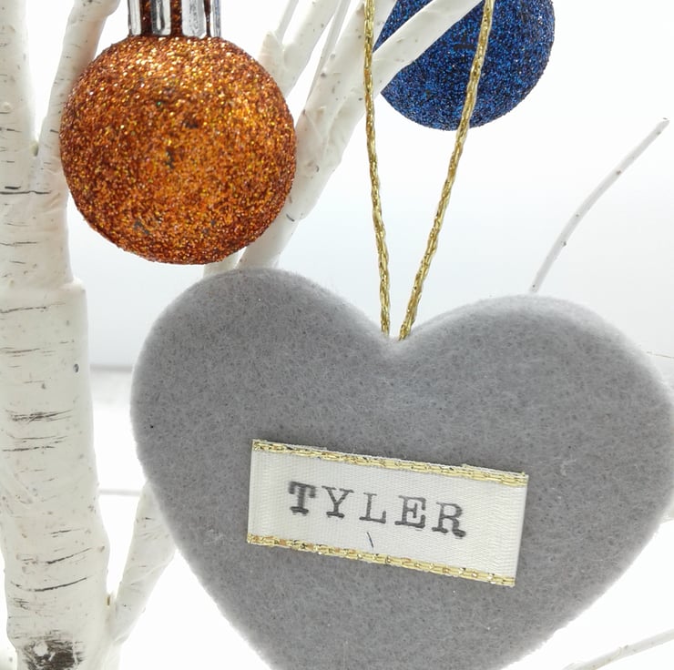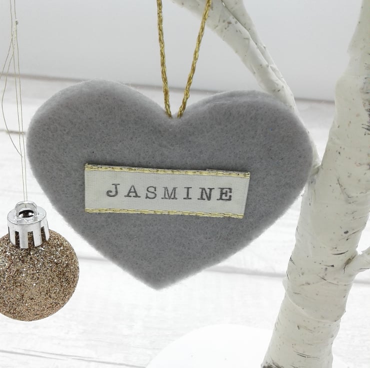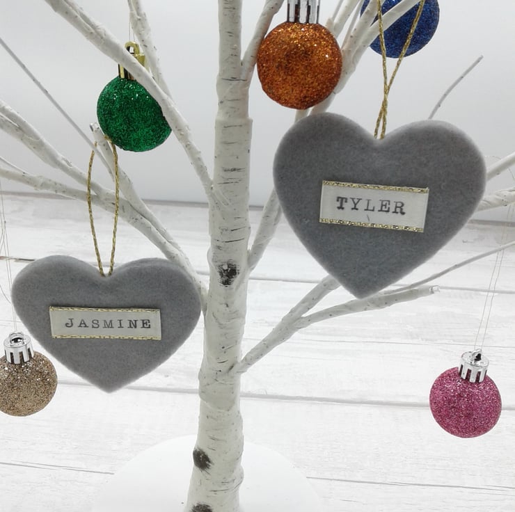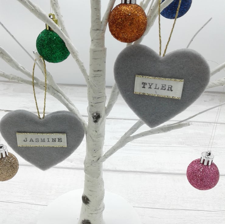 This listing is for a personalised felt heart decoration, which would be perfect for a decoration on a Christmas tree or a personalised place setting that the recipient can then hang on their Christmas tree.