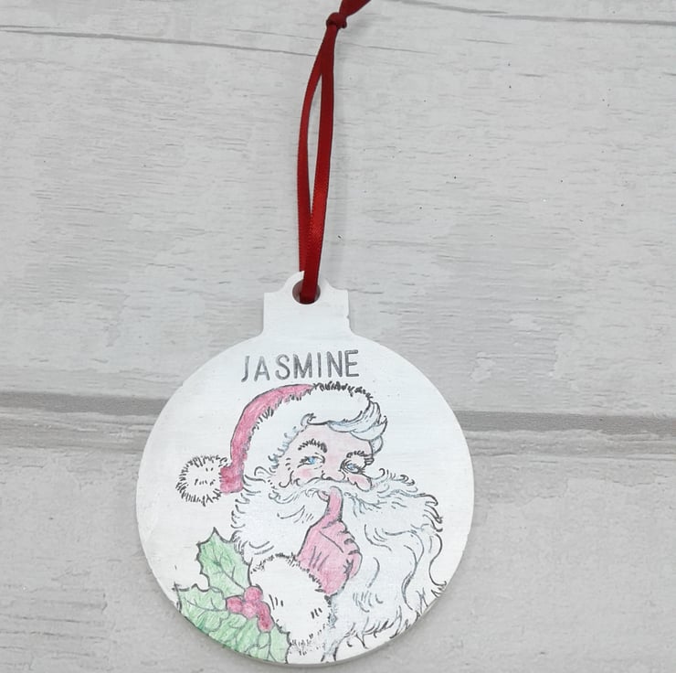 This listing is for a personalised ceramic bauble, decorated with a hand painted santa clause. This item is suitable for all ages and would make a lovely keepsake.