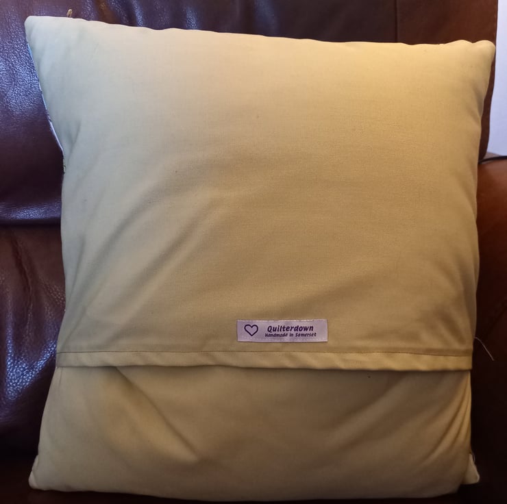 The cushion cover measures approx 16" x 16" (inches) and has an envelope closing.