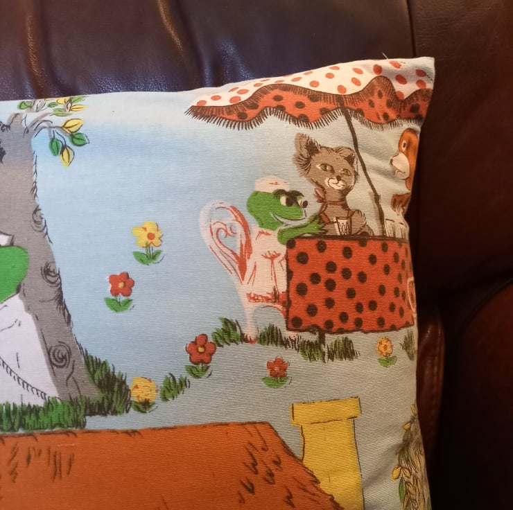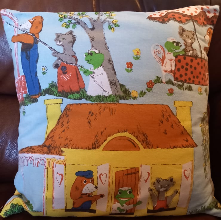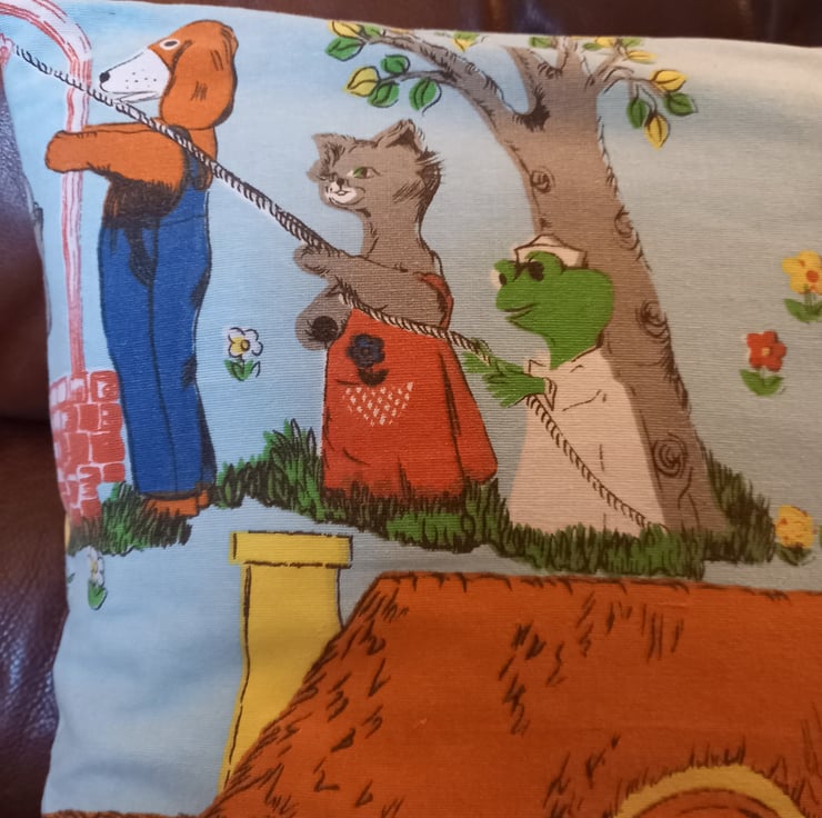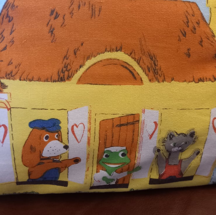 Fabulous vintage cartoon fabric, featuring Hector and his friends, Zsa Zsa the cat and Kiki the frog as well as Hector's famous house.