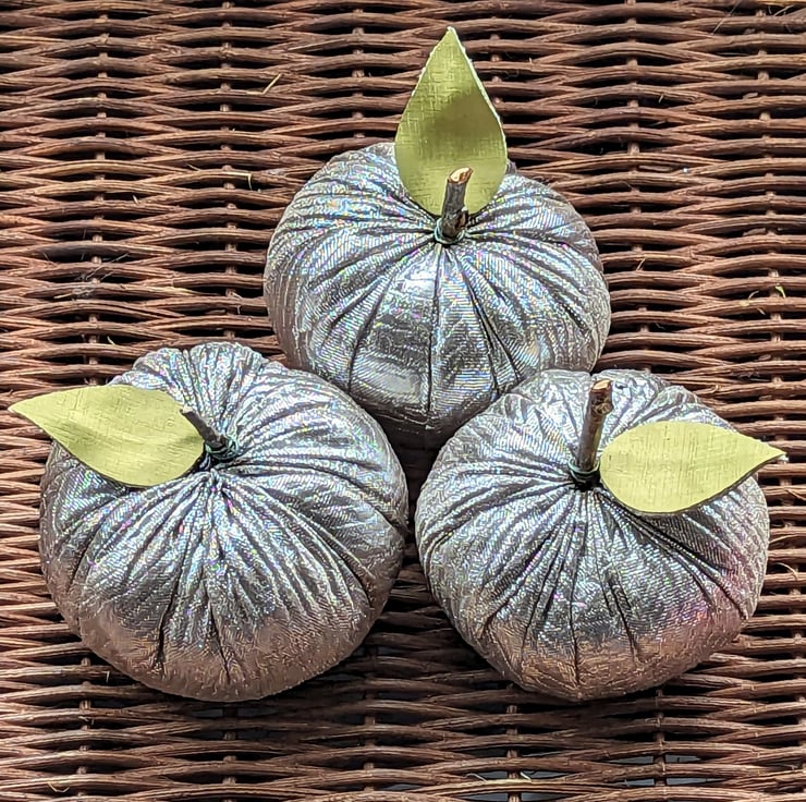Silver apples make perfect gifts to adorn your house at Christmas but are perfect all year round. They are great for anniversaries. These fabric apples can be used as paper weights, pin cushions or just as decoration.