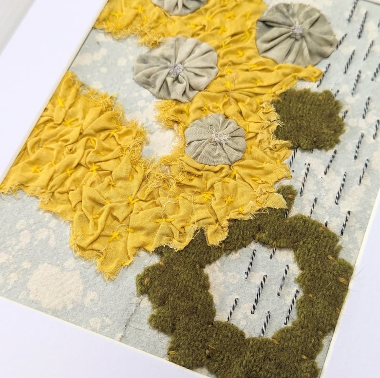 I create coastal inspired textures using a combination of embellishing and embroidery; blending a variety of recycled fabrics to create subtle variations in tone. These are stitched inside waste plastic to cast true to life pieces with cement giving a distinct contrast between the manmade structure of the packaging and the soft natural textures of the textiles.