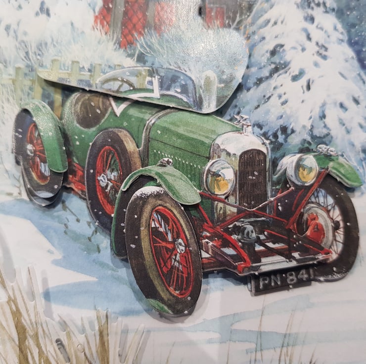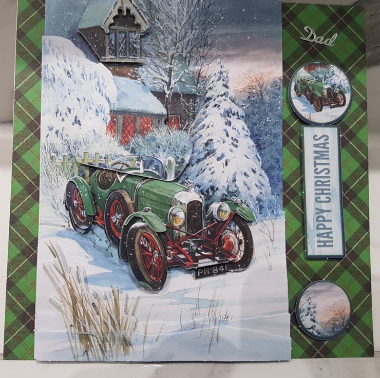 A lovely classic car card in a 3d layered design. Features 'dad' to the front.