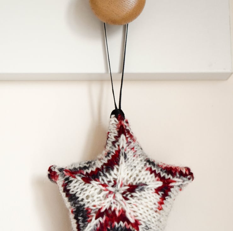 The yarn used to knit the star is made from 75% superwash merino / 20% nylon / 5% Silver Stellina