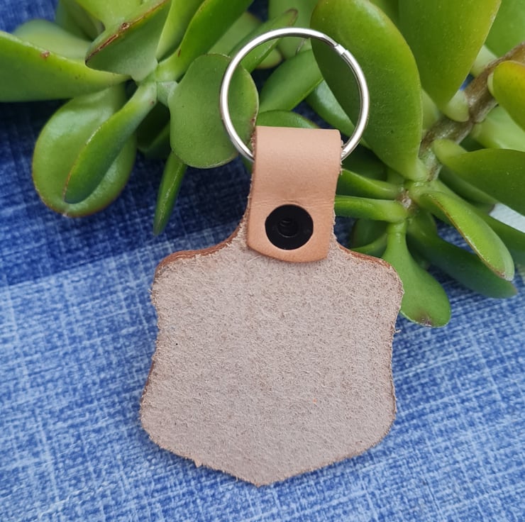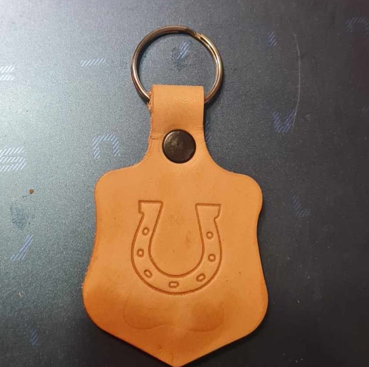 Handmade leather horse shoe keyring design by my neice with free postage in the UK
