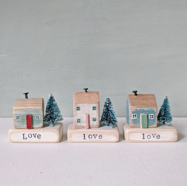 Choose your favourite house to pop on your stamped wooden base, and add your teeny tree.