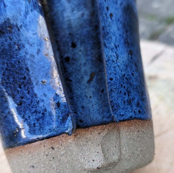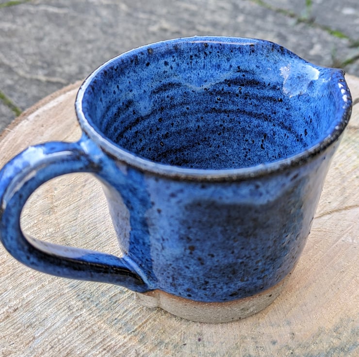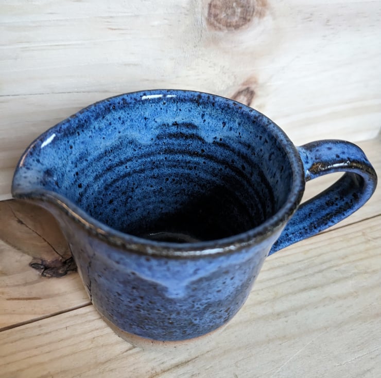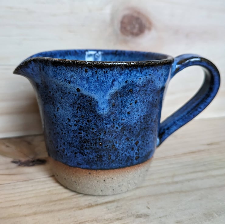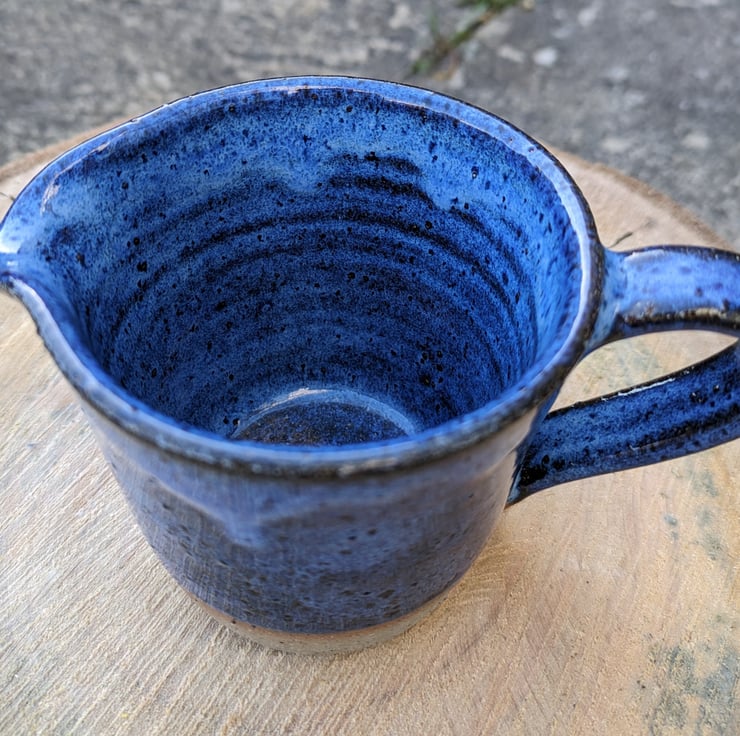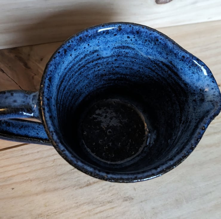 Lovely medium sized jug with the bottom edge of the clay exposed. Love the way this gorgeous blue glaze flows and floats down to create a wave effect. Fired in a kiln at a stoneware temperature (c1200 degrees) makes it durable and each one comes out of the kiln looking slightly different.
