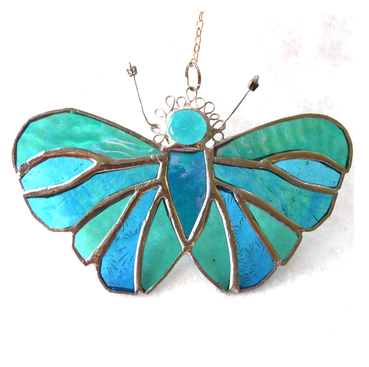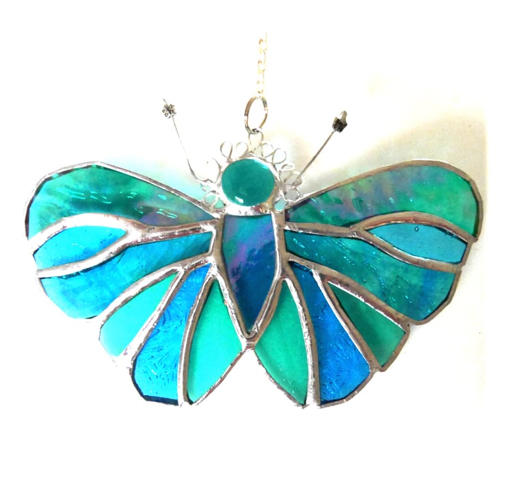 The suncatcher hangs from a little chain which is securely attached to the top of the butterfly.