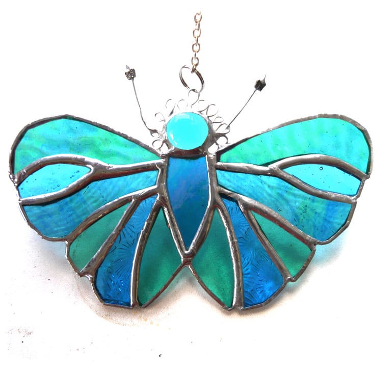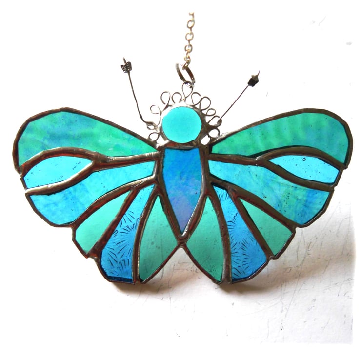 A butterfly to the same design as my Rainbow version but in rather forgeous teal coloured glass. Turquoise green and Turquoise blue go exceptionally well together in my eyes.