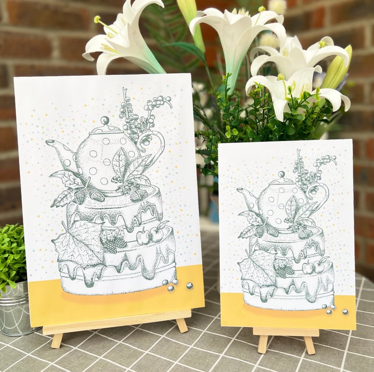 This illustration would look great in your kitchen, conservatory, or summer house. It would also make a lovely gift for any afternoon tea or sweet treat fan.