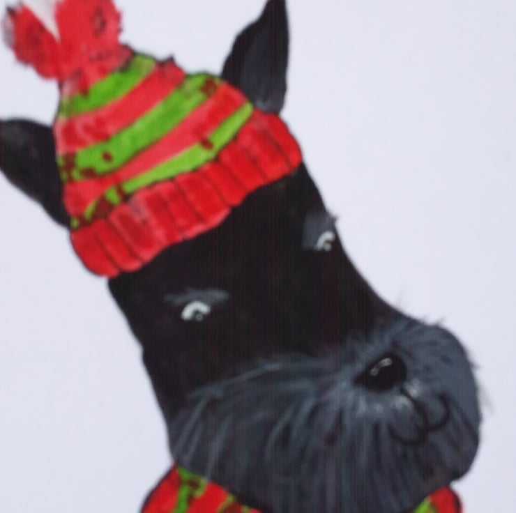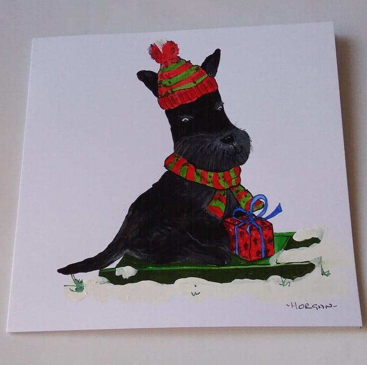 THIS IS A 6 X 4 INCH HAND PAINTED CARD WITH A SCOTTIE DOG