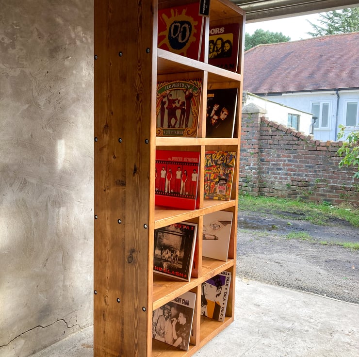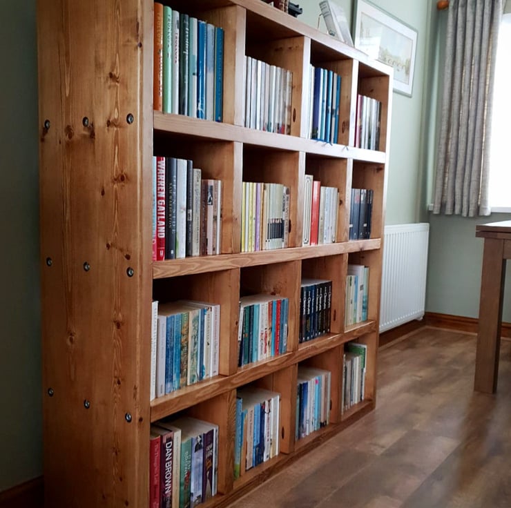 The main framework of the shelves are held together by strong 100mm turbo bolts. These have been recessed into the surfaces but left visible, giving the unit a modern, industrial feel. The shelf dividers are fixed using pocket holes.