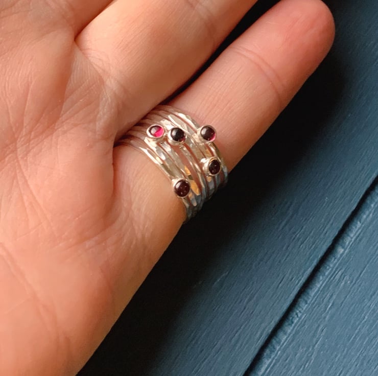 Sterling silver ring made from 1.2 mm silver round wire, the profile wire has been hammered giving the ring a unique organic contemporary look. catching the light.