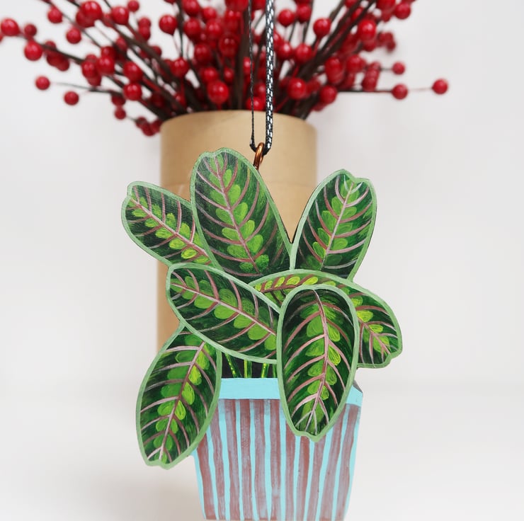 Beautiful wooden MARANTA FASCINATOR HOUSE PLANT Christmas tree decoration.