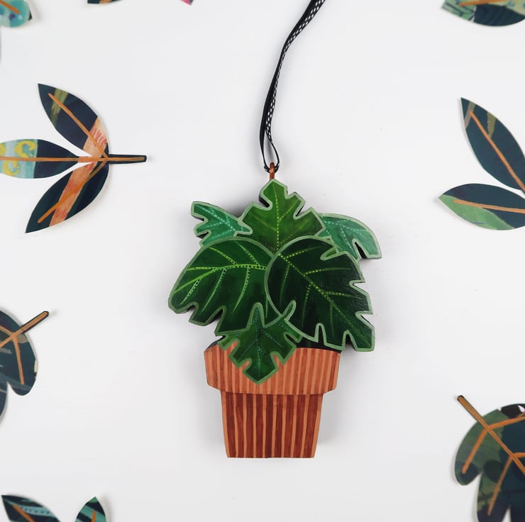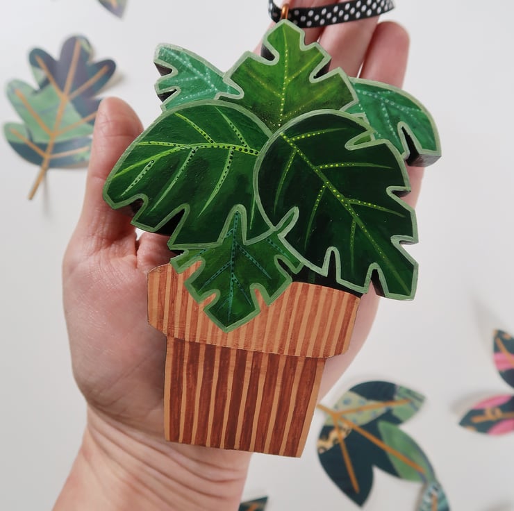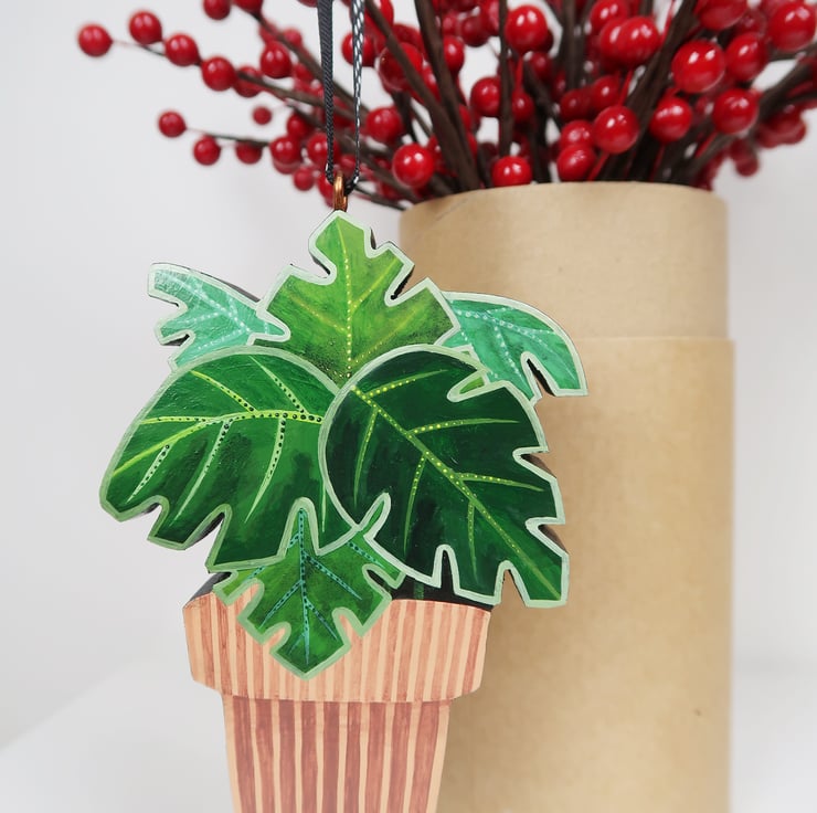 Beautiful wooden MONSTERA HOUSE PLANT Christmas tree decoration.