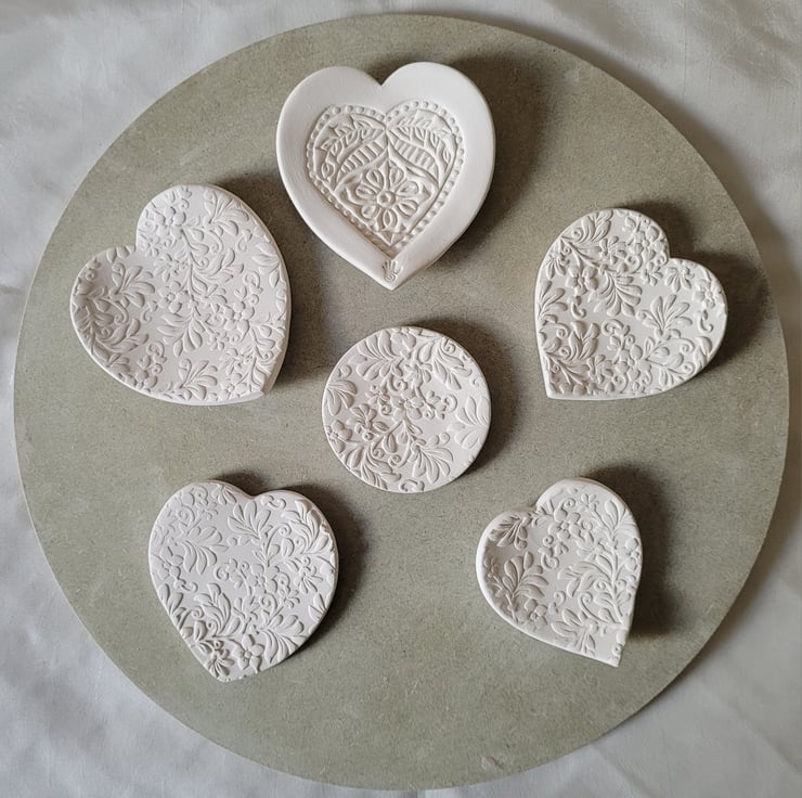 This is my embossed ceramic heart ring dish, it can also be used as an incense cone burner.