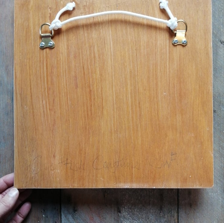This ceramic landscape comes ready to hang and measures approx 14cm square with a depth of 1.3 cm mounted onto a wooden frame made from up cycled wood, measuring 30 cm square, depth of 1 cm. painted in satin Moonlight White and wood colour on the reverse.