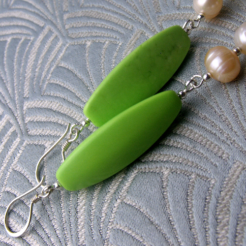 These green dangle earrings have sterling silver earring hooks
