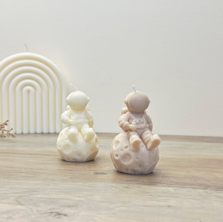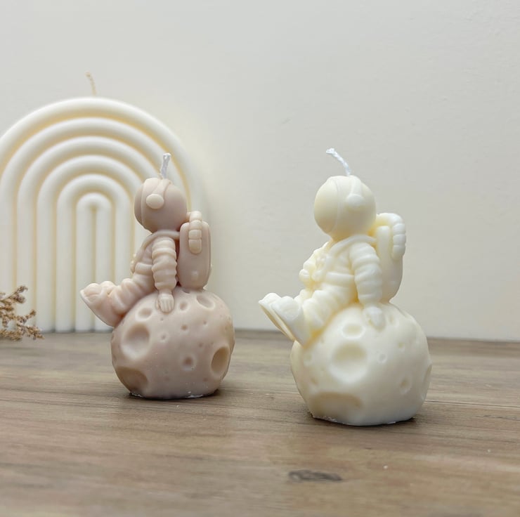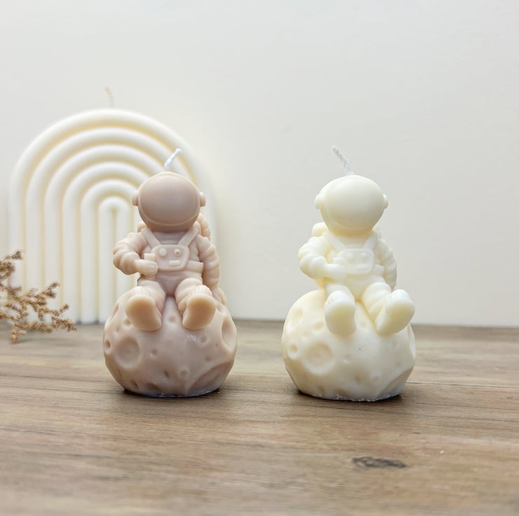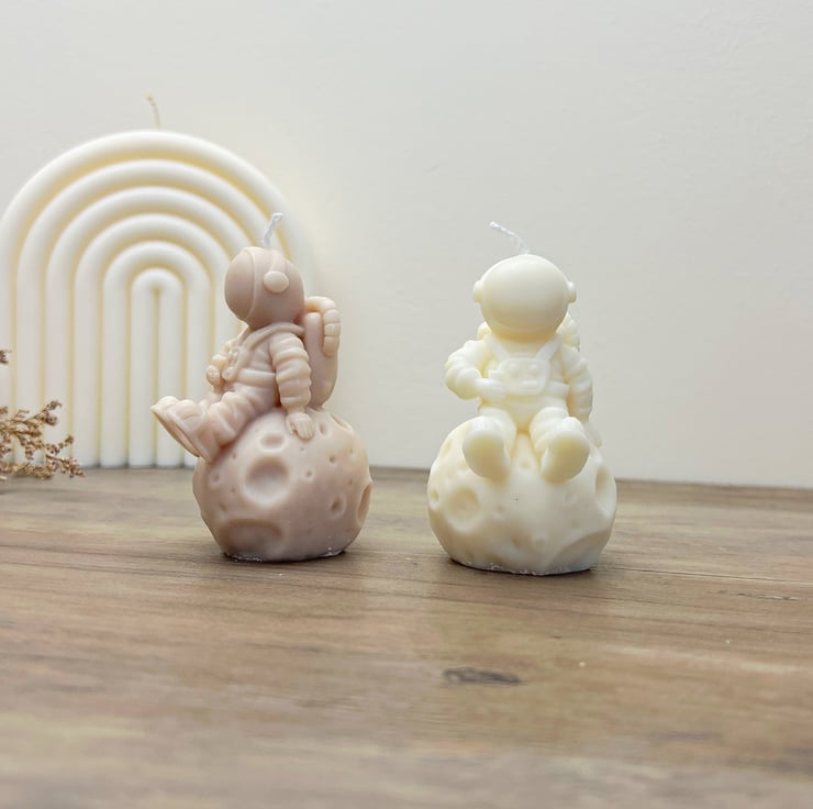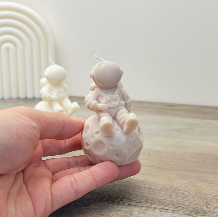 Light up your world with this quirky, handmade soy wax astronaut candle! Our spaceman candle is perfect as a funky home decor piece or birthday cake topper for any space-themed party, it’s crafted with 100% natural soy wax and comes complete with a crater filled moon and little spaceman in a spacesuit and helmet. Vegan-friendly and biodegradable, it’s the perfect gift for the star-gazer in your life!