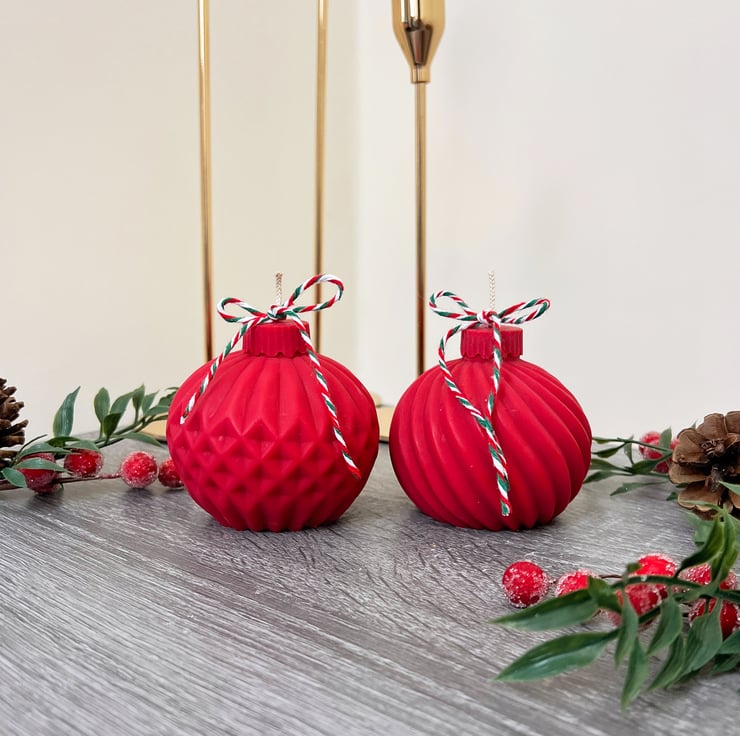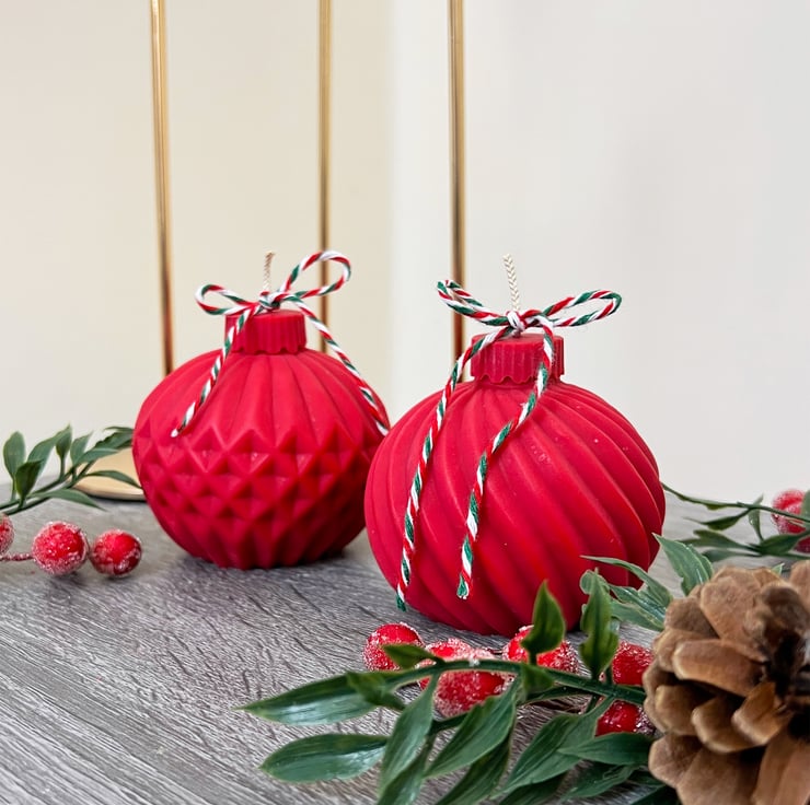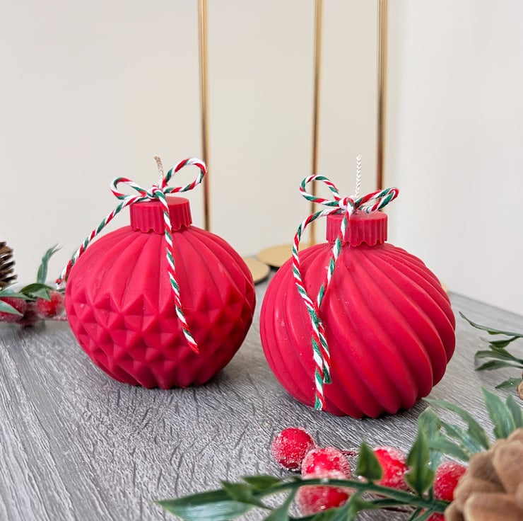 My love for Christmas inspired these red Christmas tree bauble candles.