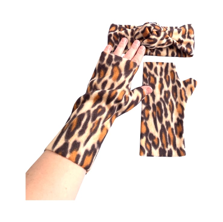Embrace the winter season with warmth and style. Order your Soft Leopard Fleece Fingerless Gloves and Ear Warmer Set now and make a bold statement wherever you go!