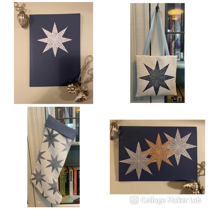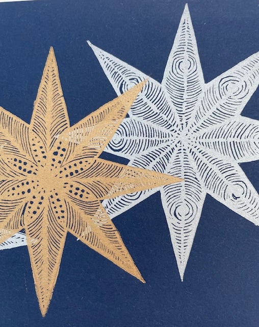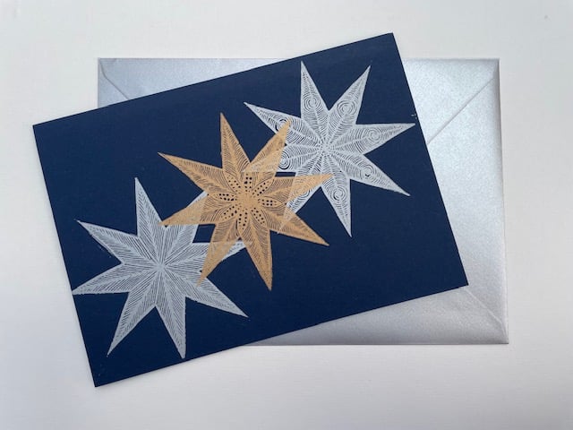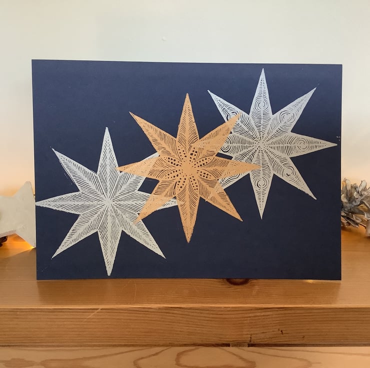 These star Christmas cards are handprinted in my studio space at home from my original designs.