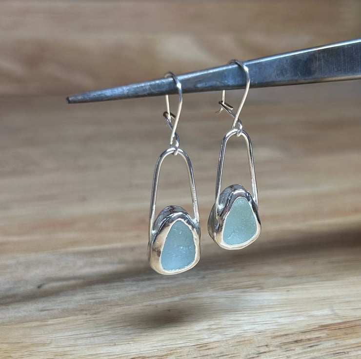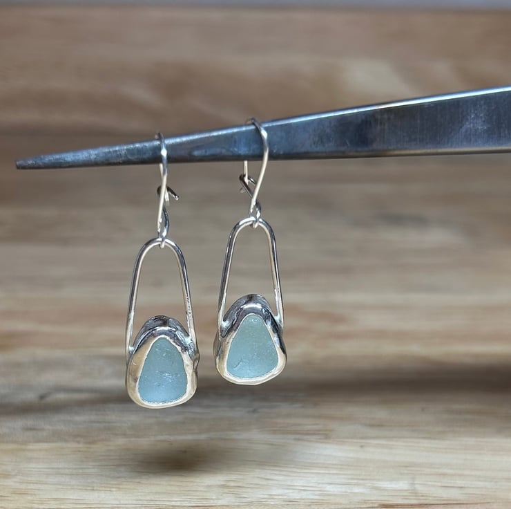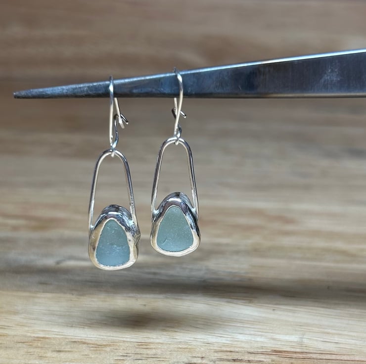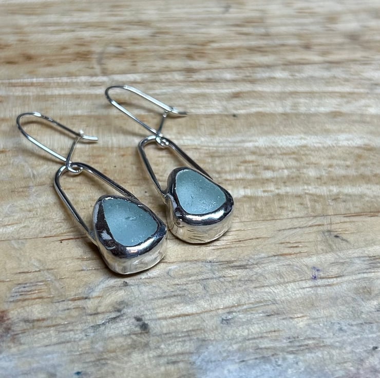 Lovely handmade sterling silver dangle earrings with beautiful pieces of aqua coloured welsh sea glass collected from North Wales. These earrings are simply elegant, so striking! and shine different shades of aqua in different lights. Hallmarked for authenticity of the sterling silver used. Perfect gift or something special to yourself x