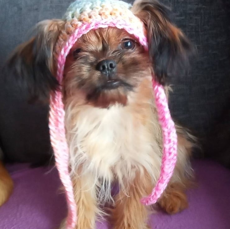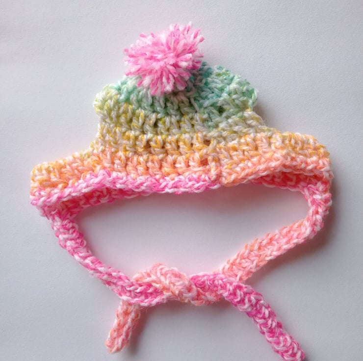Gorgeous Rainbow hat with pompom for small breed dogs and cats!