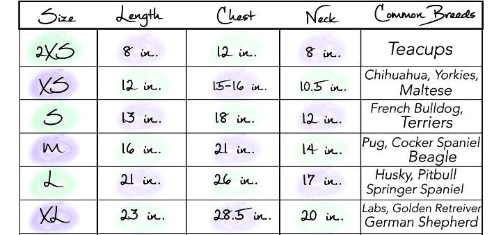 PLEASE MEASURE YOUR PET BEFORE PLACING AN ORDER TO MAKE SURE YOU SELECT THE CORRECT SIZE. IF YOUR PETS MEASUREMENTS ARE CLOSE TO A SIZE OPTION SELECT THAT AND THEN MESSAGE ME YOUR MEASUREMENTS