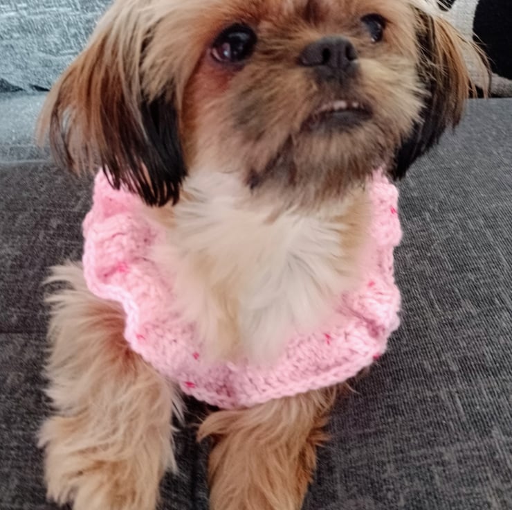 Made with baby soft double knit yarn for a soft, thick jumper to keep your pet warm.