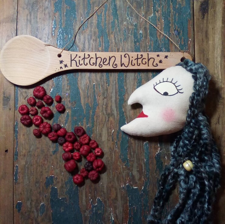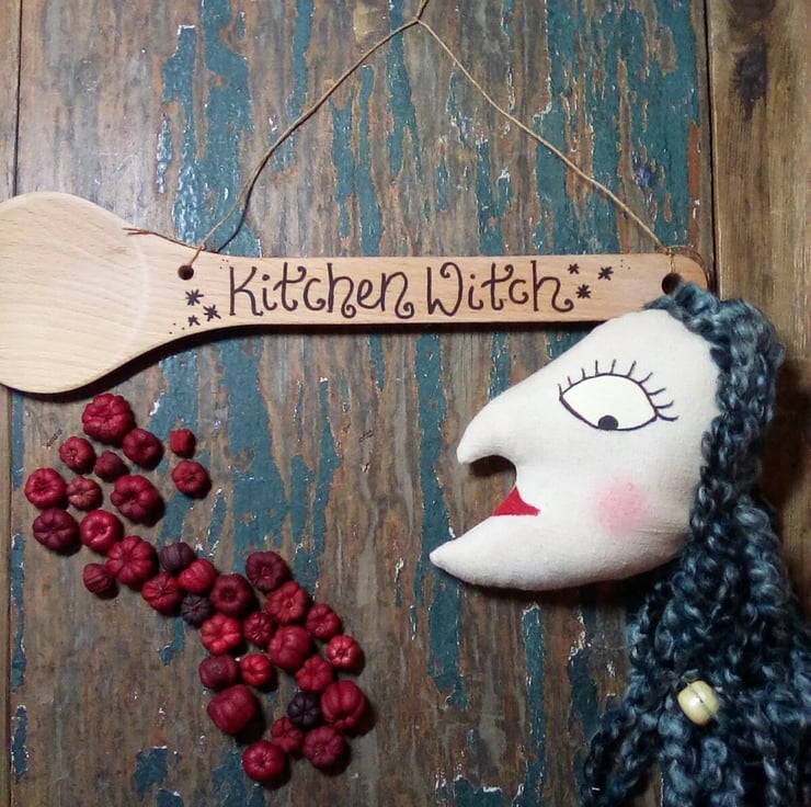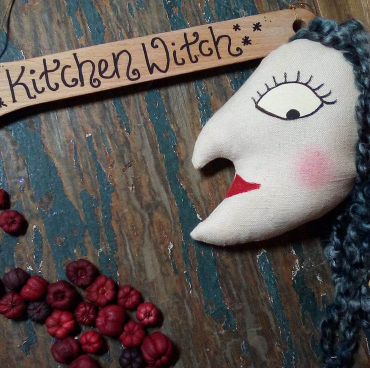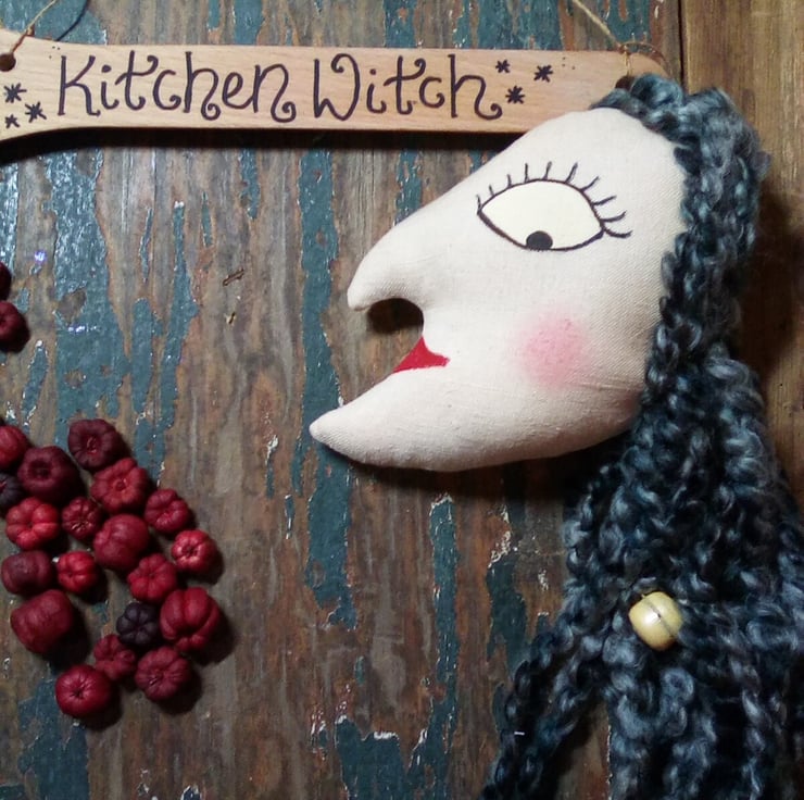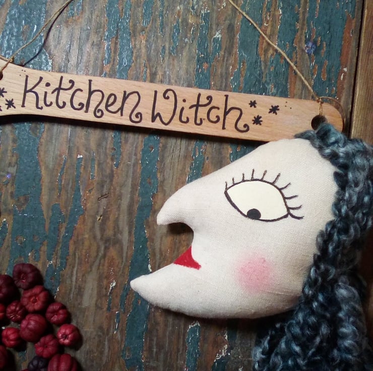 Kitchen Witch folk art, primitive, witch, Yule hanging,kitchen decor
