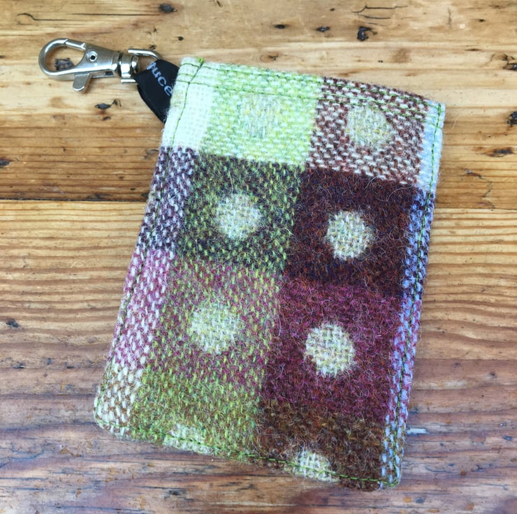 Card holder & key clip, travel, oyster card, earphone tidy - Spotted tweed wool