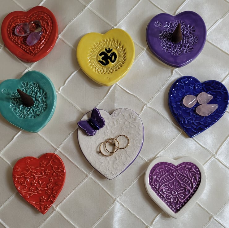 This is my floral embossed ceramic heart ring dish, it can also be used as an incense cone burner.