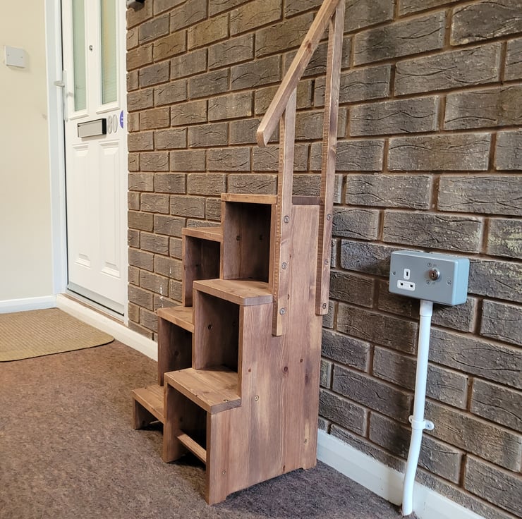 No need to hide it in a cupboard, leave in the hall or room, choose top step left or right