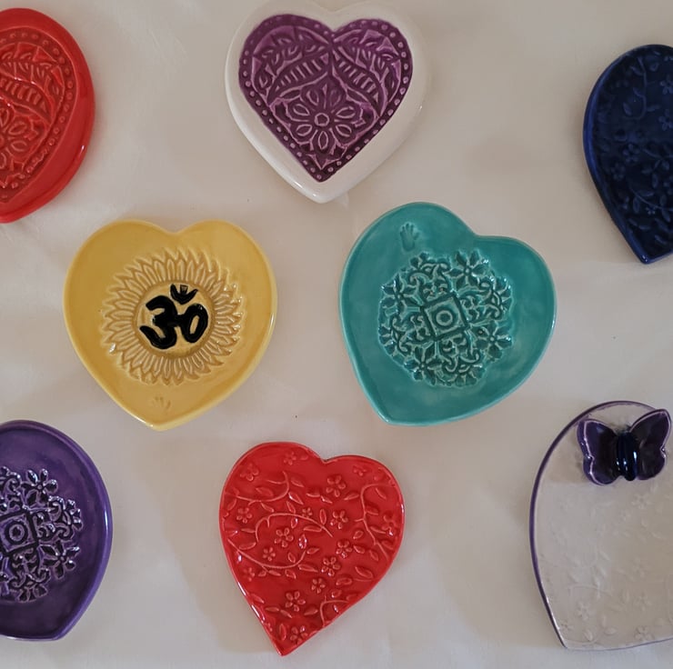 This is my floral embossed ceramic heart ring dish, it can also be used as an incense cone burner.