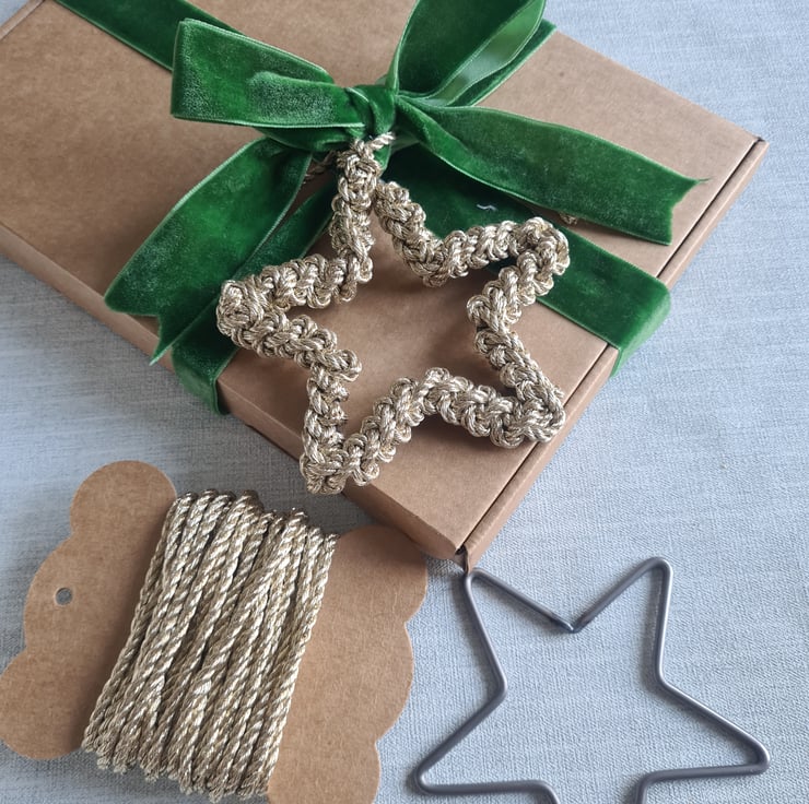 This kit includes 1 x wire star and 3m of macramé cord in either gold, platinum or cream/gold.