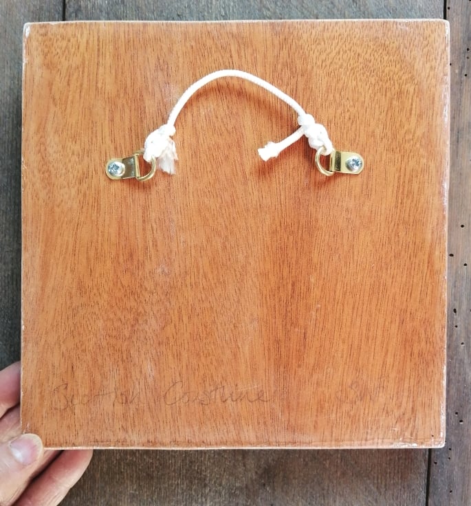 This ceramic landscape comed ready to hang and measures approx 5.5 cm square with a depth of approx 1 cm, mounted onto a wooden frame made from up cycled wood, measuing 19.5 cm square, depth of 1 cm, painted in satin Moonlight White.